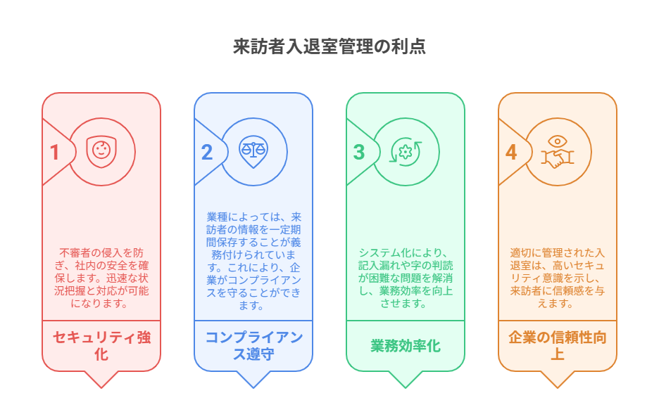 来訪者入退室管理表は、単なる記録以上の役割を果たします。