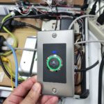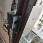 ① 業者に専用の入退室カードを持たせ、1台目のカードリーダーにかざす。